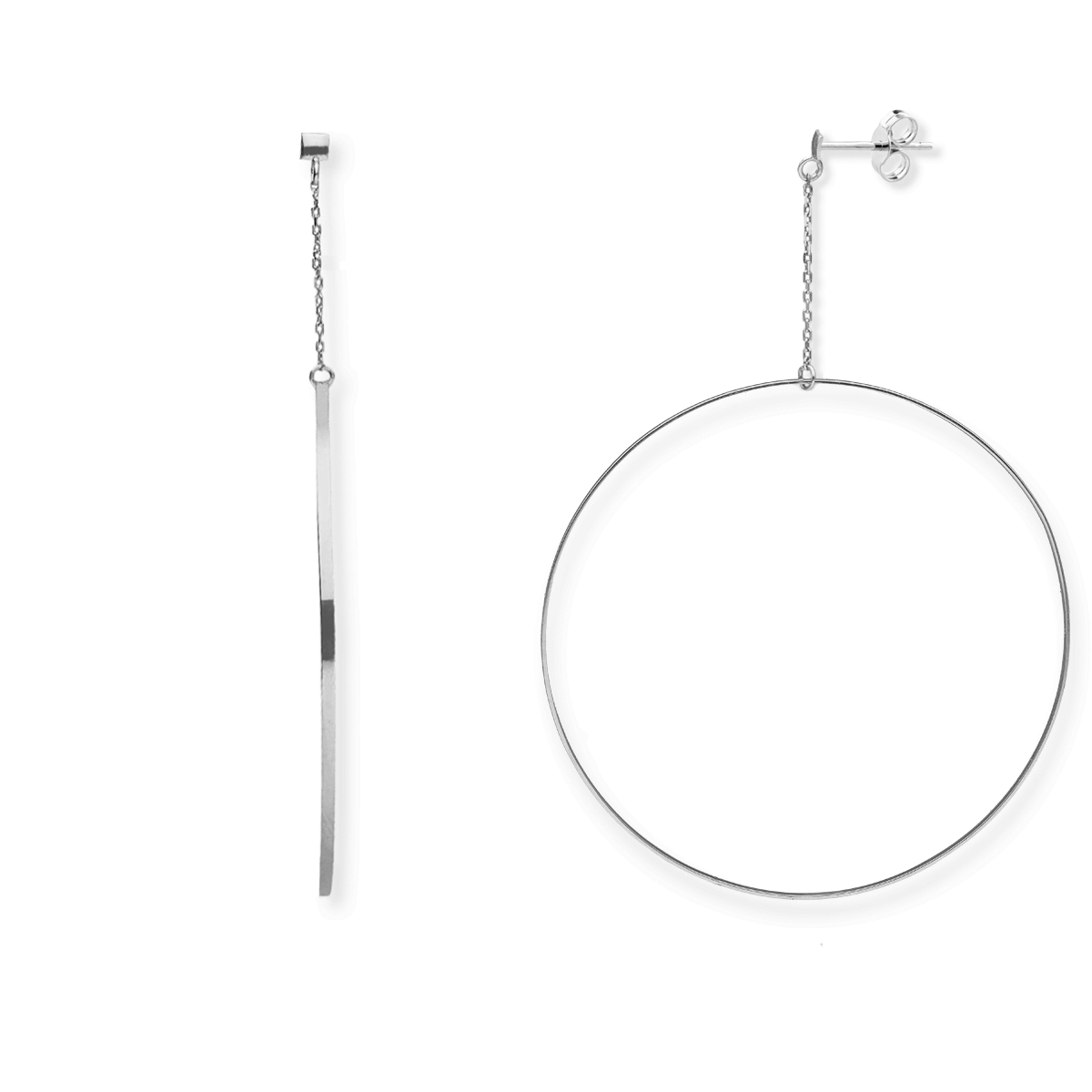 Wytworne pod każdym względem, nowoczesne kolczyki koła wykonane z rodowanego srebra wraz dekoracyjnymi pozłacanymi łańcuszkami to nieodzowny element każdej kobiecej szkatułki.