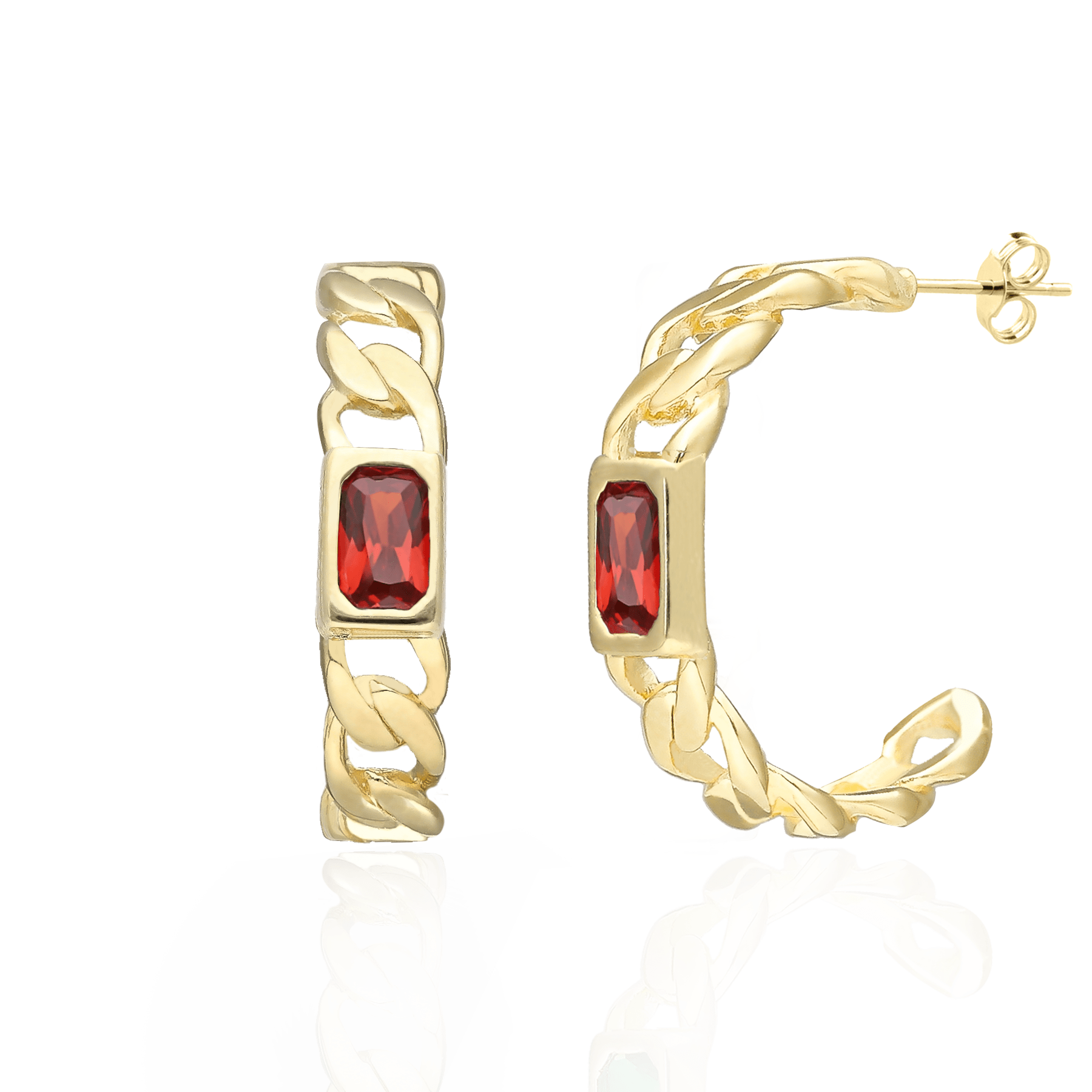 Przyciągające spojrzenia najmodniejsze kolczyki srebrne, pokryte 24-karatowym złotem w kształcie łańcucha z rubinową cyrkonią to ukłon w stronę pasjonatek współczesnego piękna.