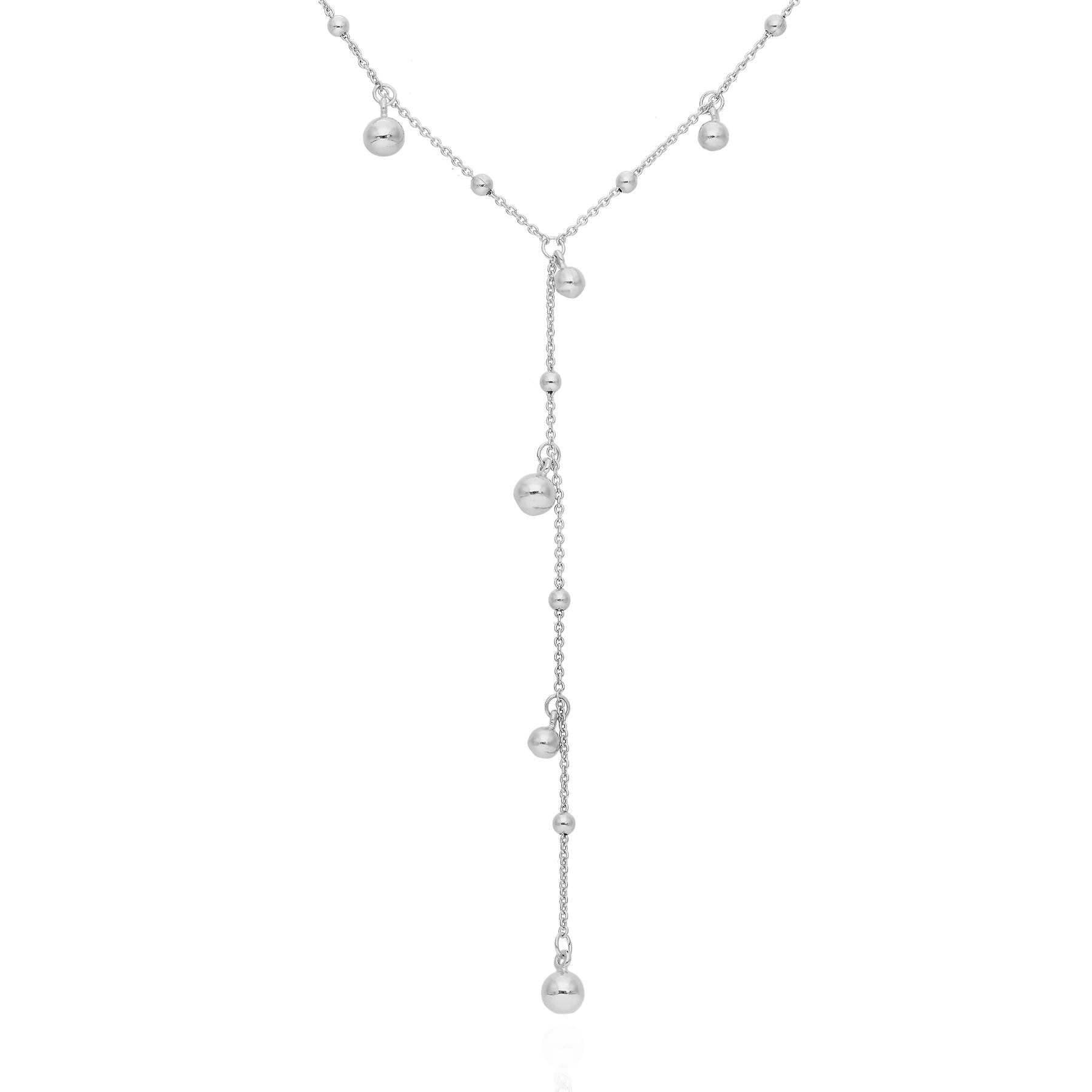 Delikatny srebrny rodowany naszyjnik wraz z oryginalnymi kuleczkami to gustowna propozycja podkreślająca wyjątkowość każdej kobiecej stylizacji.
