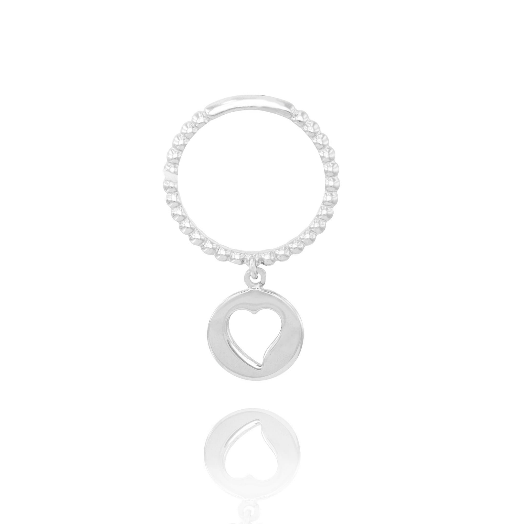 Zjawiskowy srebrny rodowany pierścionek serce w kole, to ukłon w stronę wszystkich pasjonatek wyrazistych ozdób dłoni.
