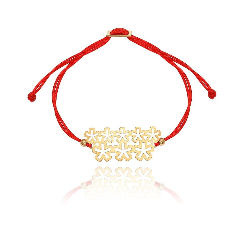 Bransoletka srebrna pozłacana gwiazdki na czerwonym sznurku Polska jest Kobietą