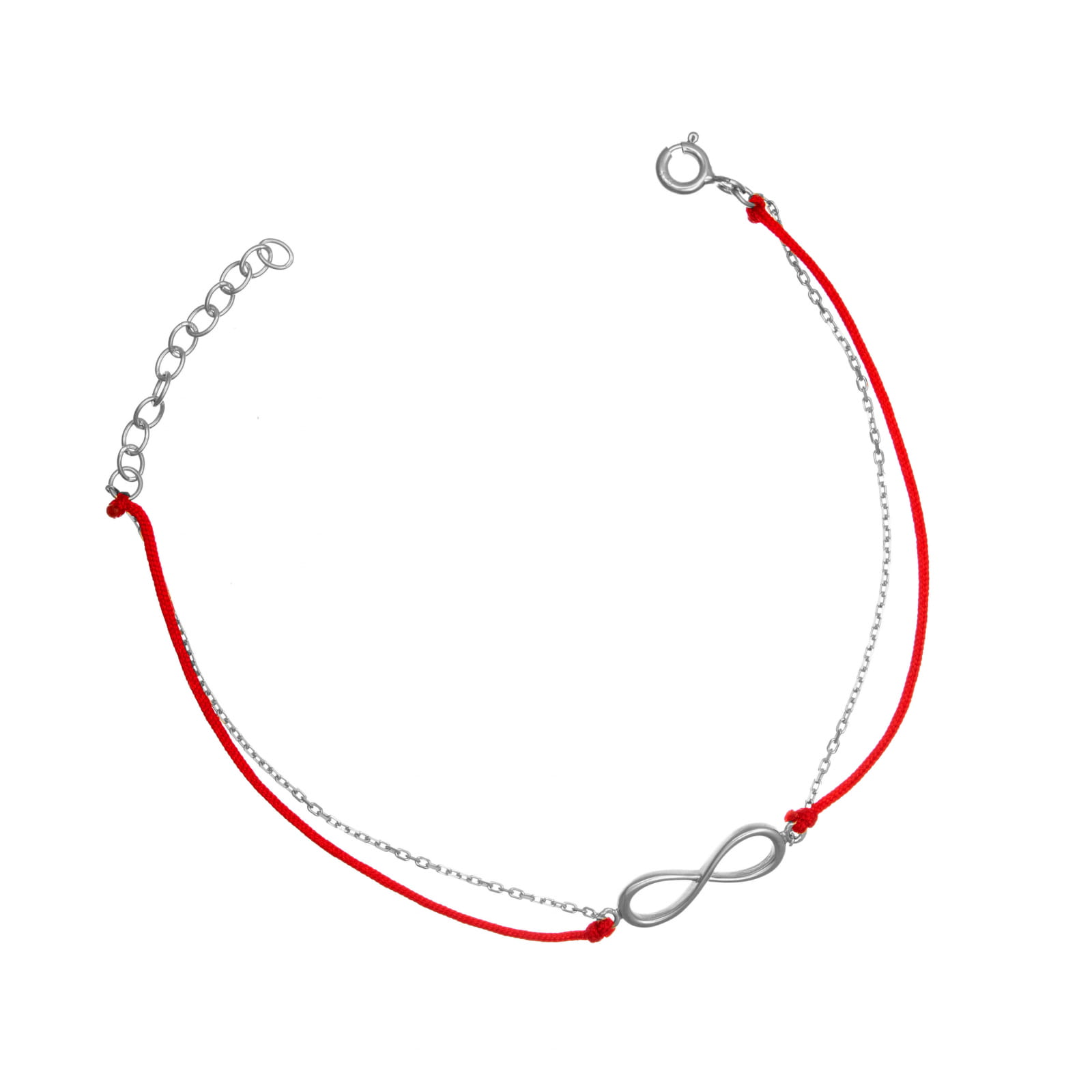 Bransoletka srebrna z nieskończonością na czerwonym sznurkiem