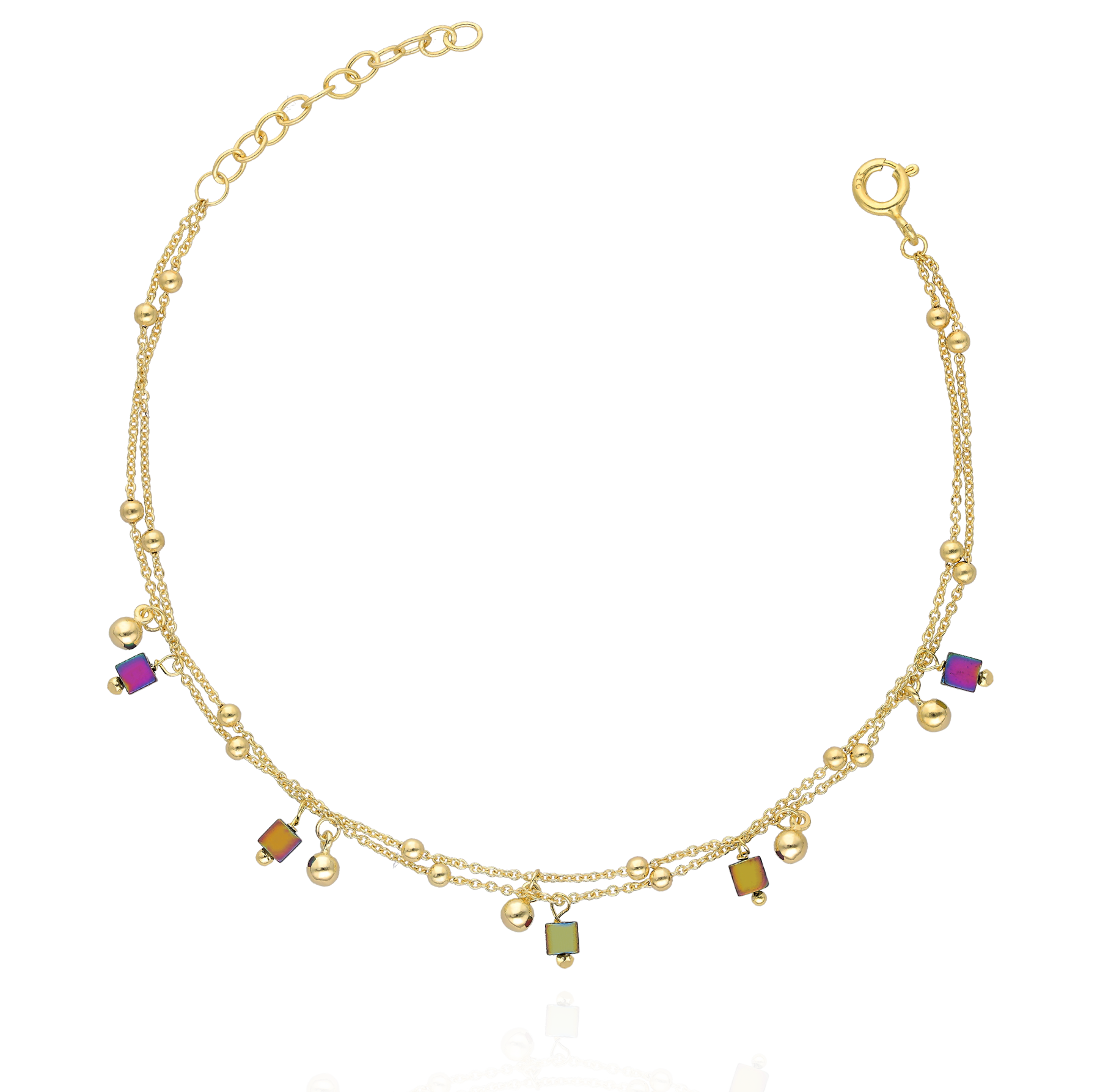 Bransoletka srebrna pozłacana z kuleczkami i hematytami Double Layla