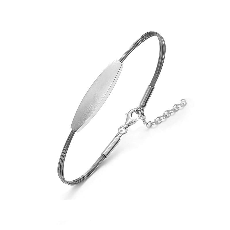 Bransoletka z rodowanego srebra z matowym elementem stanowi wspaniałą propozycję dla pasjonatek współczesnego piękna.