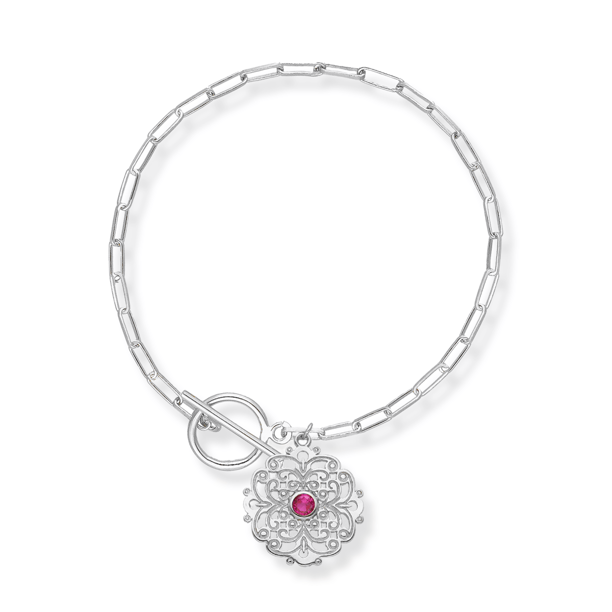 Niezwykle efektowna bransoletka srebrna, rodowana z różowym kamieniem  to wyjątkowa propozycja dla wyjątkowych kobiet.