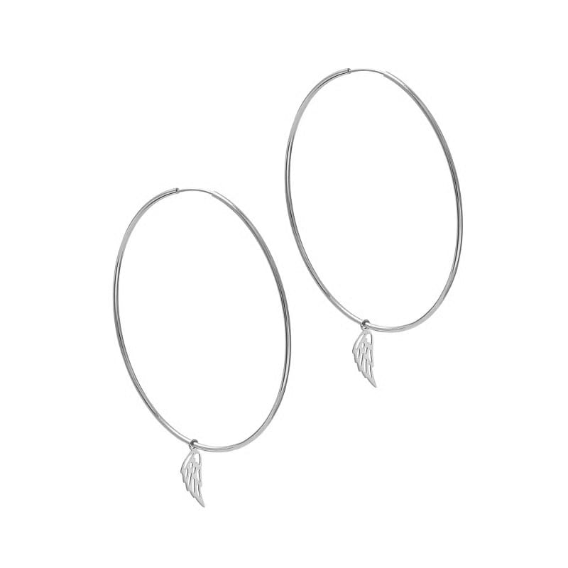 Wyjątkowe srebrne kolczyki koła, rodowane z wyjątkowym motywem ażurowych skrzydeł to wspaniała propozycja dla przebojowych kobiet.