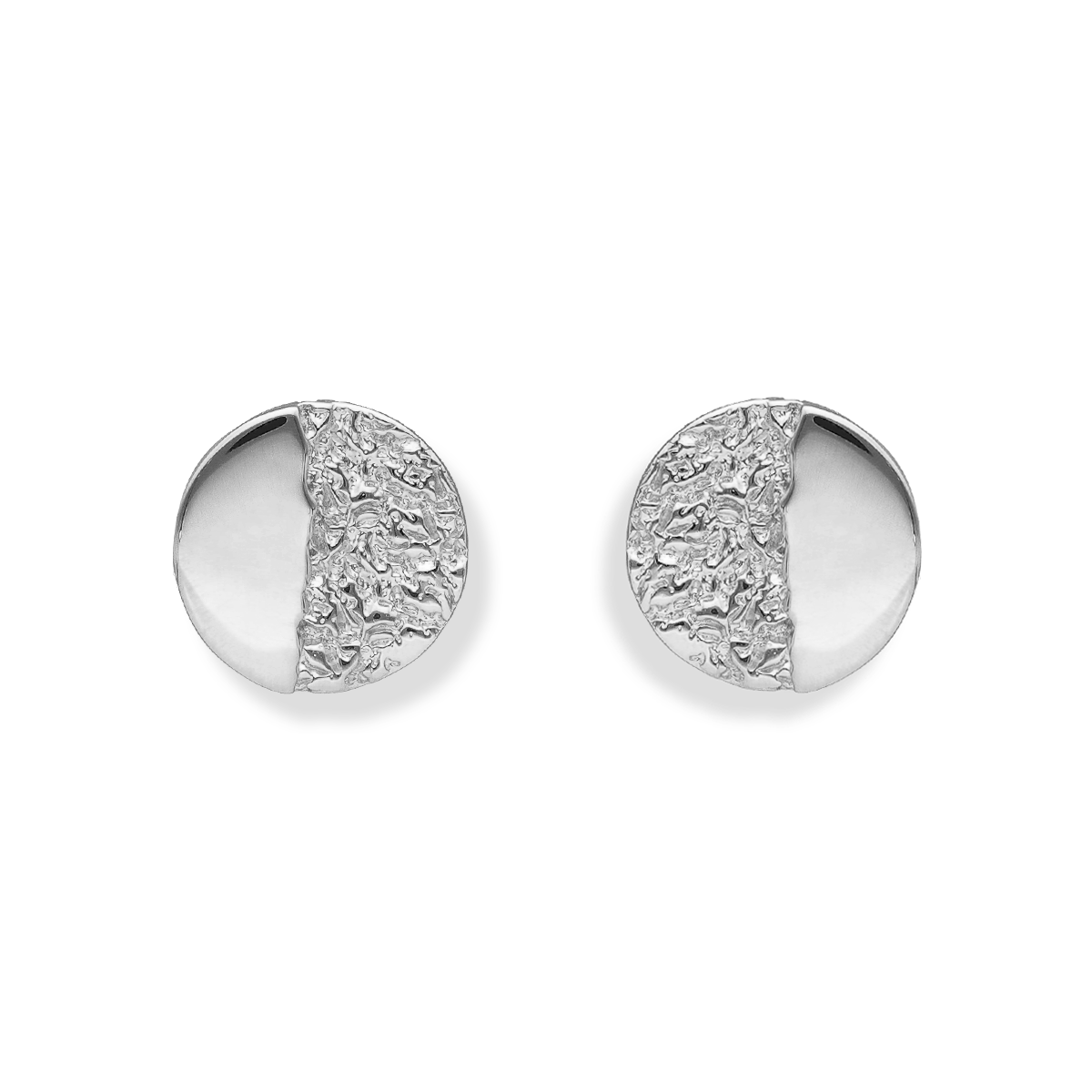 Niezwykle ekspresyjne i wytworne srebrne, rodowane kolczyki Olivia, w formie teksturowanego i polerowanego koła to pełna wyszukanego smaku propozycja, podkreślająca każdą wieczorową stylizację.