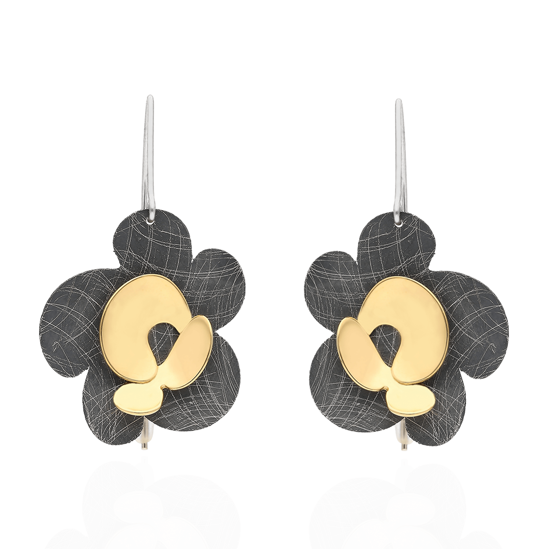 Kolczyki srebrne pozłacane z elementem srebrnym oksydowanym Flower