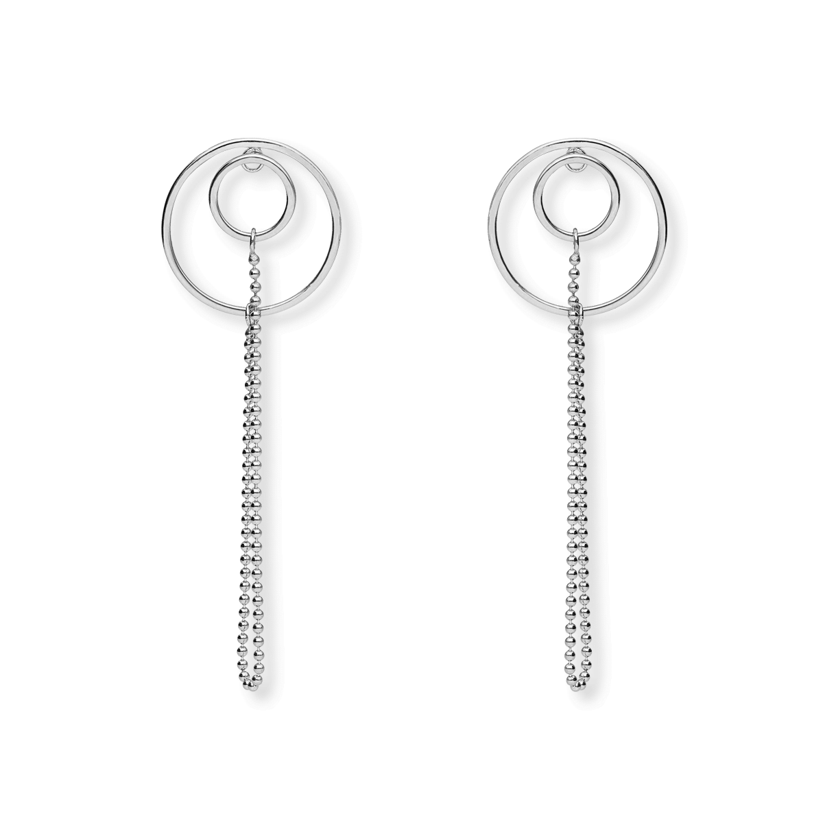 Niezwykle subtelne srebrne, rodowane kolczyki wiszące z łańcuszkami to elegancka propozycja dla przebojowych kobiet. Możliwość noszenia na 3 różne sposoby.