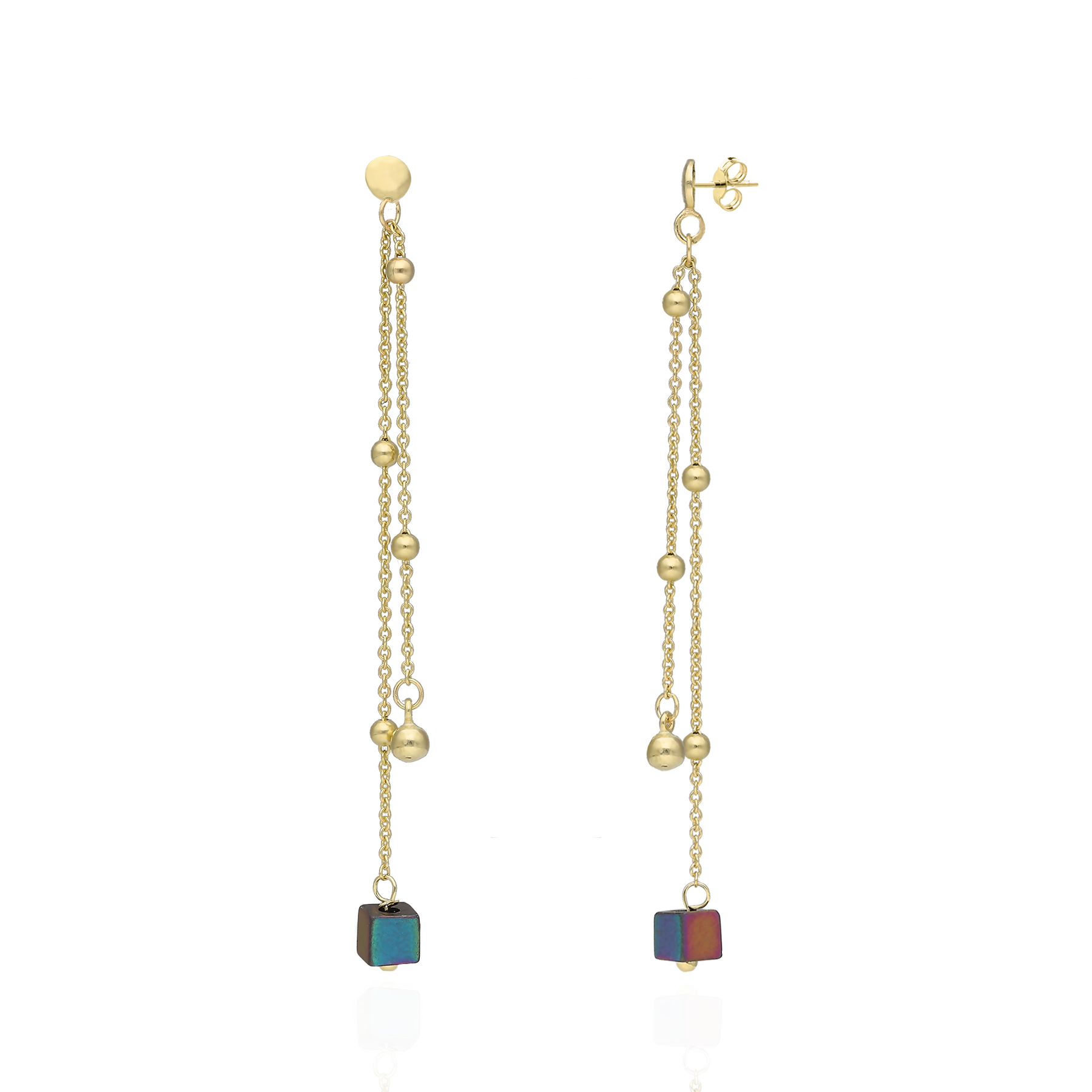 Przyciągające spojrzenia kolczyki srebrne pokryte 24-karatowym złotem na kuleczkowym łańcuszku z naturalnymi hematytami to ukłon w stronę pasjonatek współczesnego piękna.