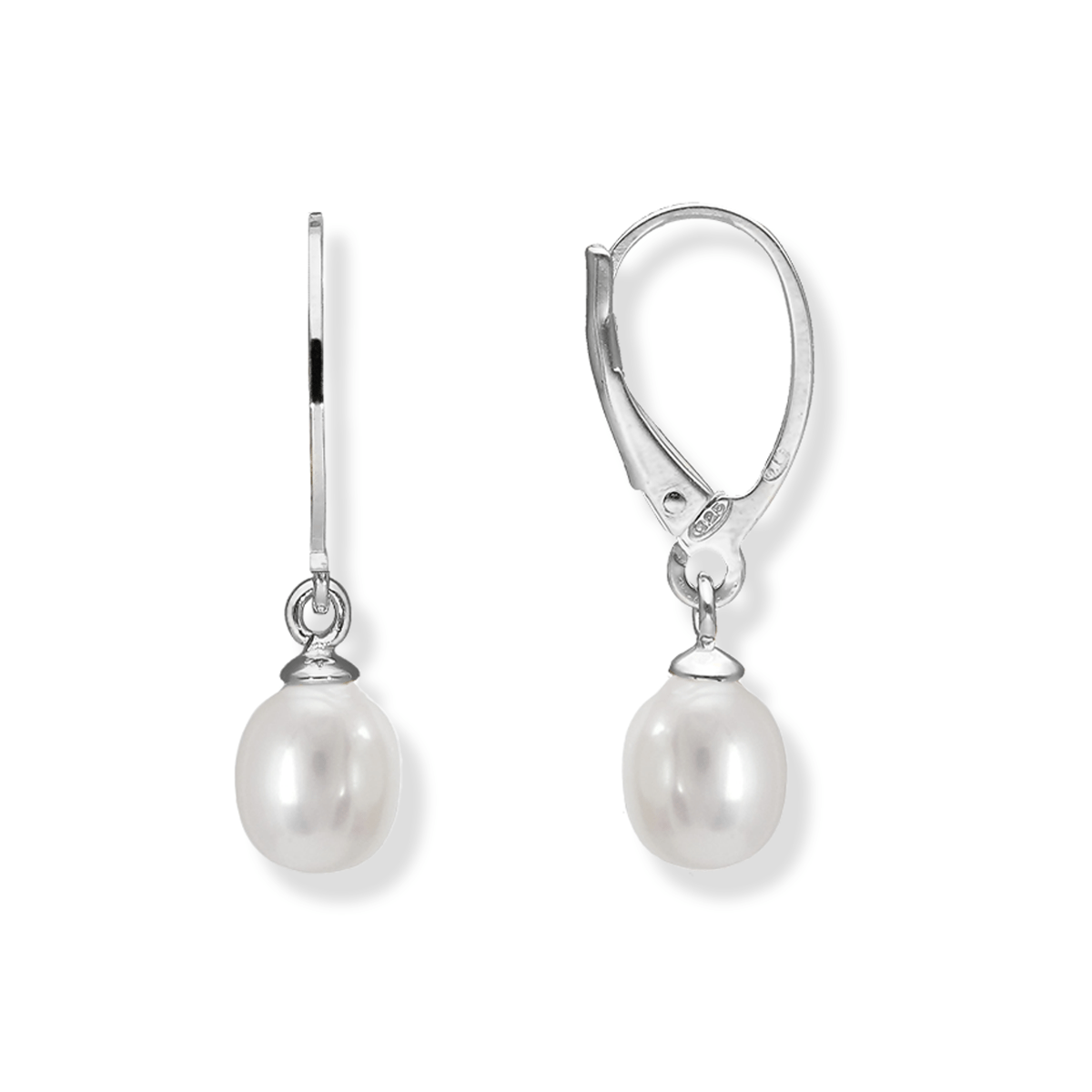 Pełne wyszukanej elegancki srebrne, rodowane kolczyki z perłą naturalną to gustowne połączenie minimalizmu.