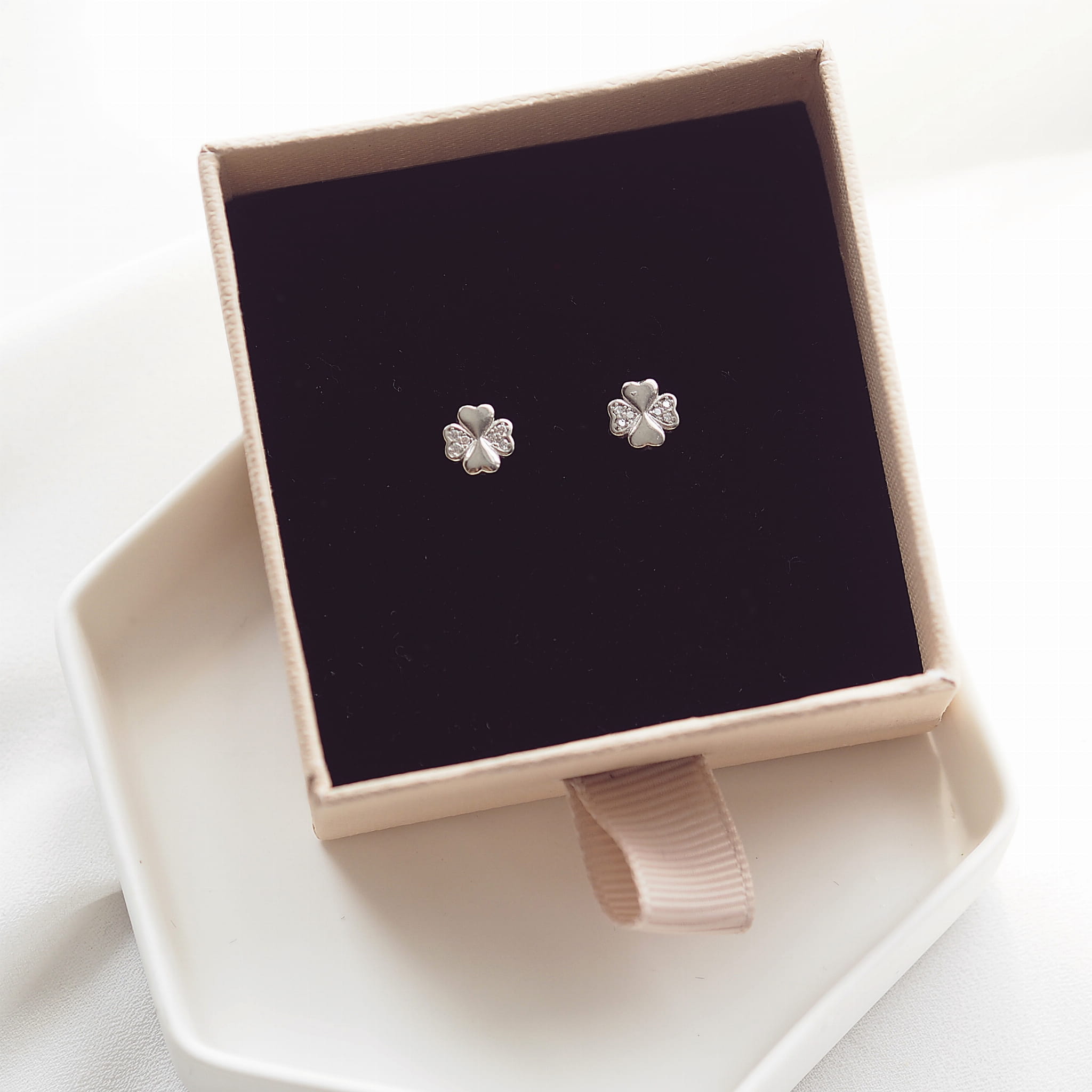 Kolczyki srebrne rodowane Koniczynka Lucky