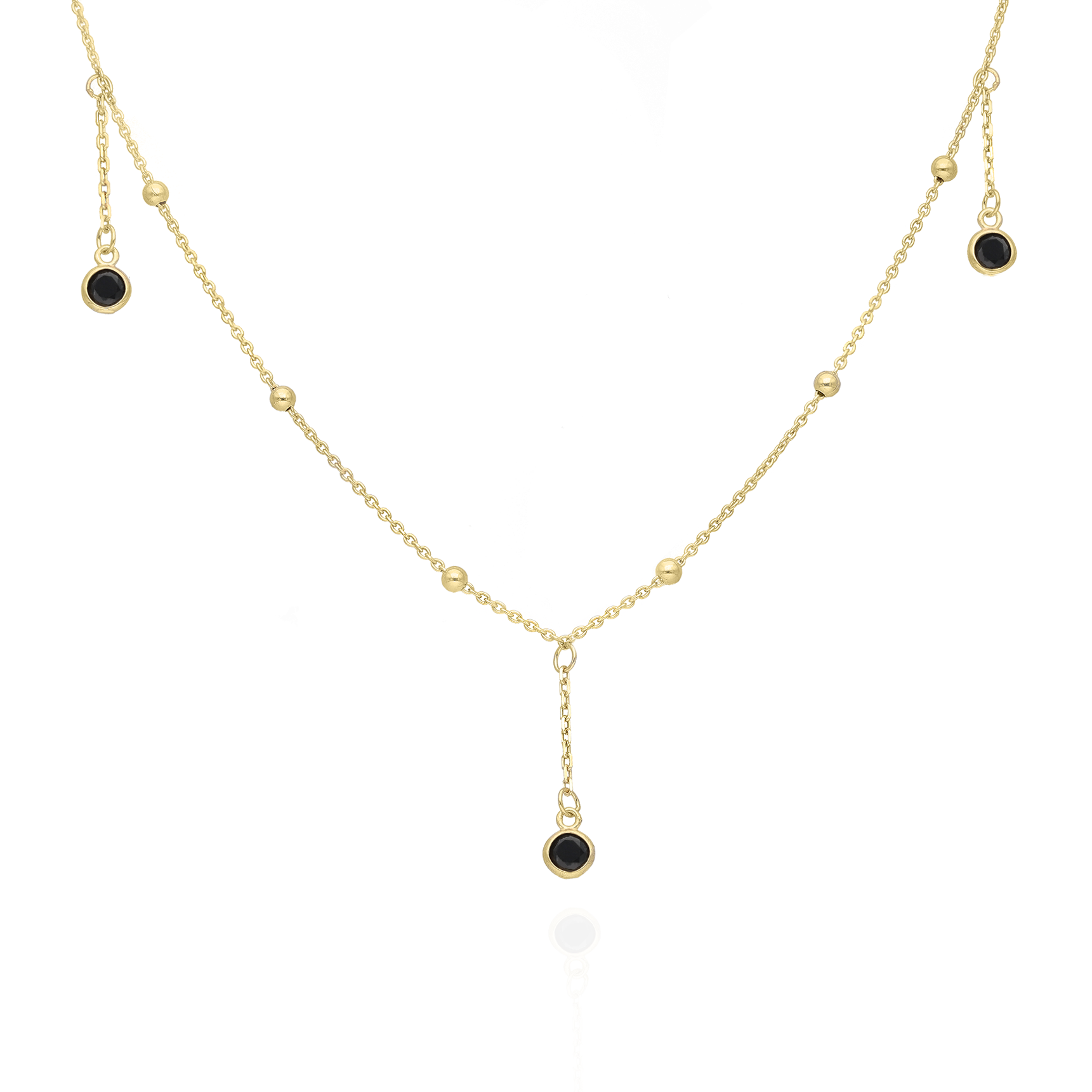 Niezwykle efektowny srebrny naszyjnik pokryty 24-karatowym złotem wraz z gustownymi mieniącymi się czarnymi cyrkoniami to wyjątkowa propozycja dla wyjątkowych kobiet.