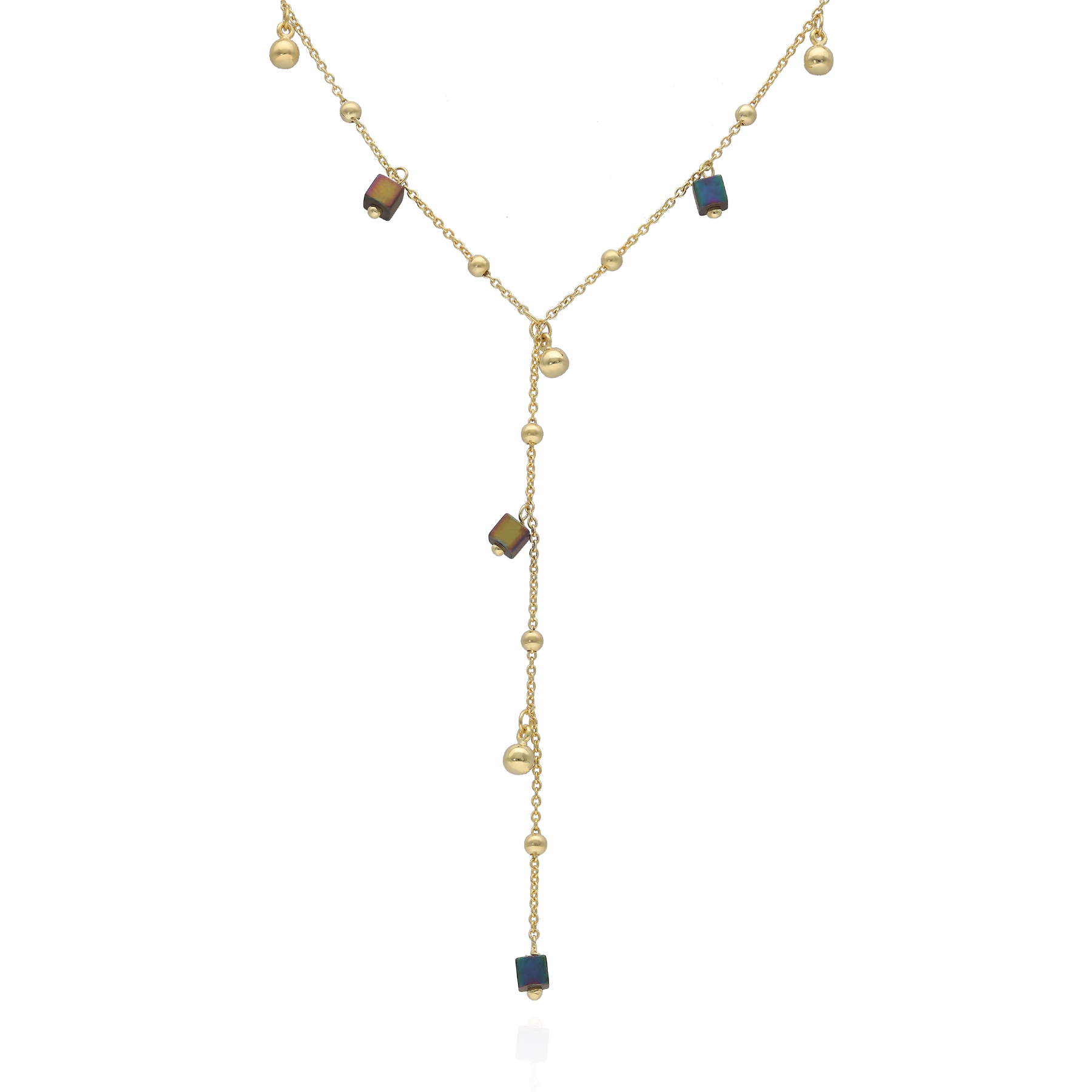 Niezwykle efektowny srebrny naszyjnik pokryty 24-karatowym złotem wraz z gustownymi kolorowymi hematytami na kulkowym łańcuszku to wyjątkowa propozycja dla wyjątkowych kobiet.