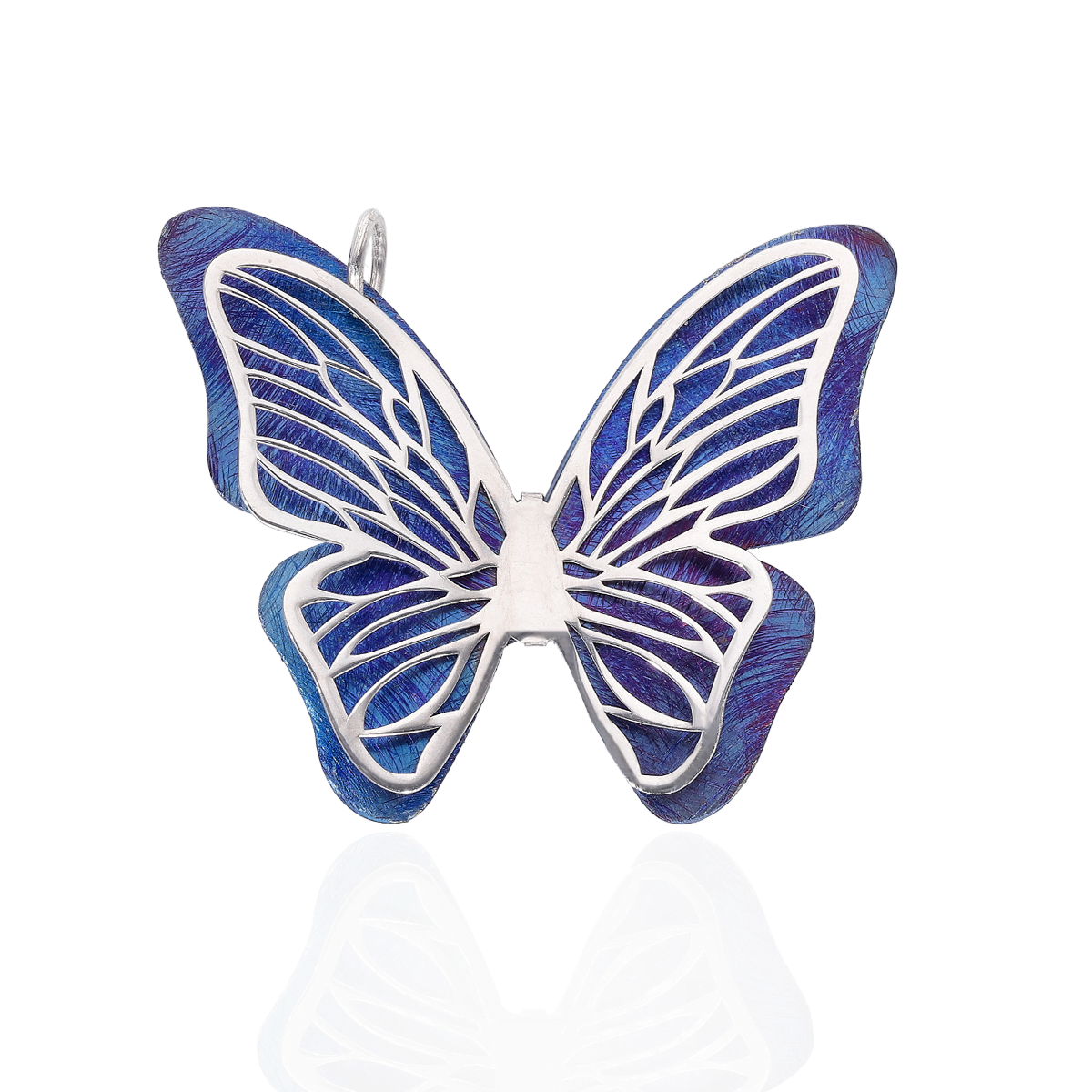 Zaskakujący niebanalną formą, atrakcyjny wisiorek wykonany z ręcznie wybarwianym Tytanem ze srebrnym, rodowanym elementem ozdobnym to ukłon w stronę miłośniczek współczesnego designu.